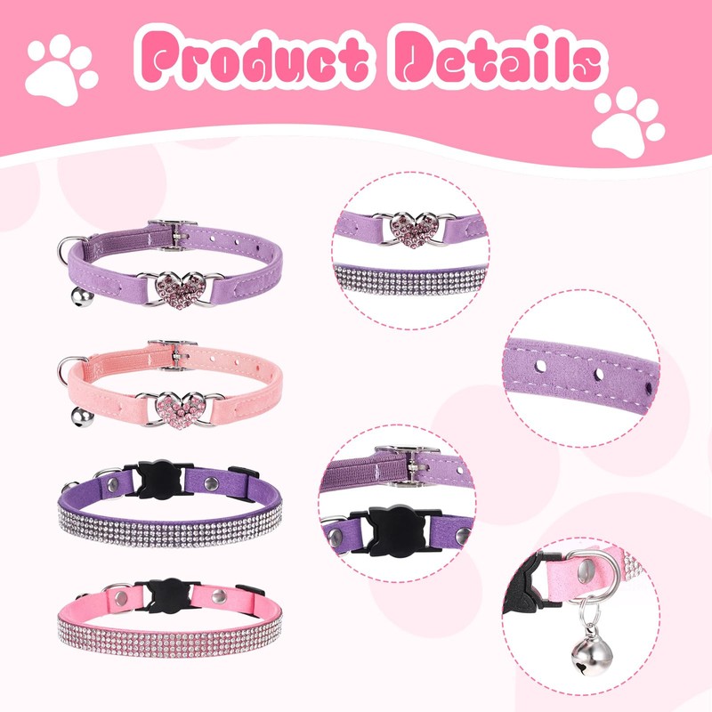 - Exquisite Design: Each girl cat collar comes with a beautiful rhinestone or heart-shaped glitter design with a detachable bell. The attractive and elegant appearance makes your cat look charming and cute, perfect for making them stand out