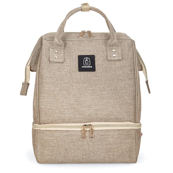 MOMIGO Breast Pump Backpack - Cooler and Moistureproof Bag Double Layer for Mother Outdoor Working Backpack with USB Charging Port, Large (Khaki)