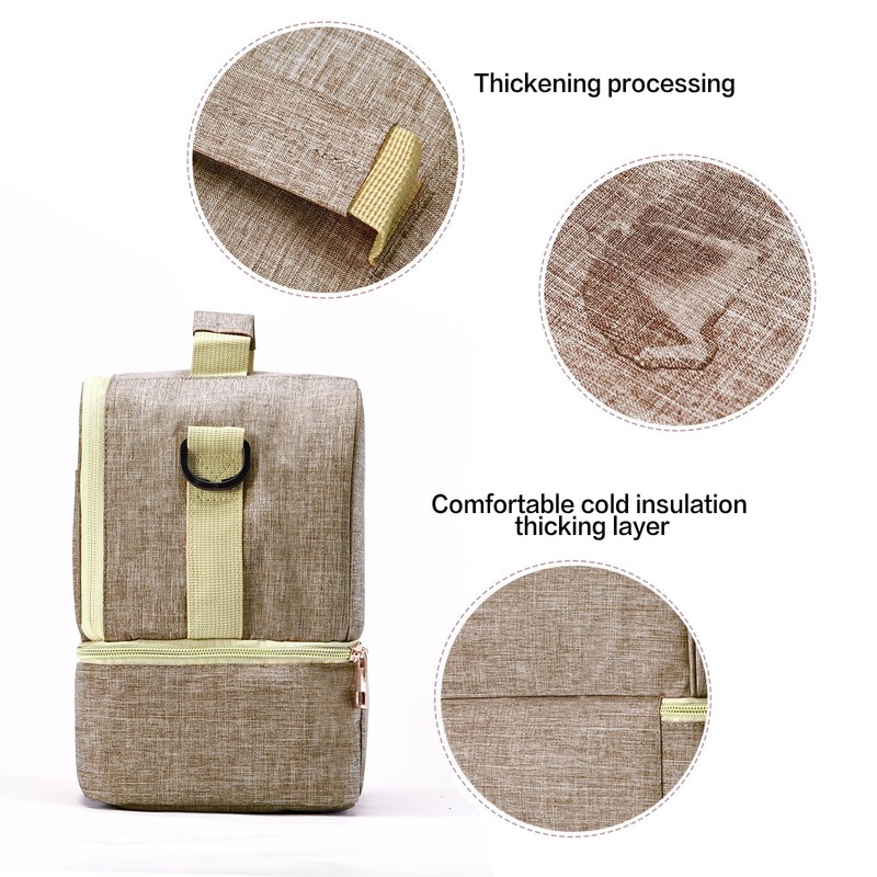 Breast Pump Bag Cooler Compartment for Breast Pump - Cooler and Moistureproof Bag Double Layer for Mother Breast Milk Pump Lunch Bag Outdoor Working (Khaki)