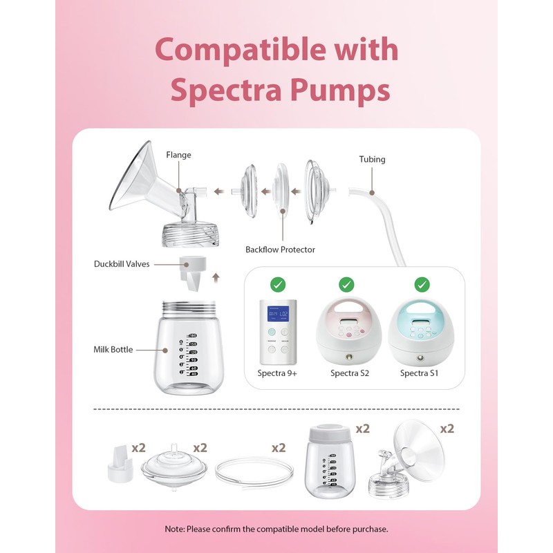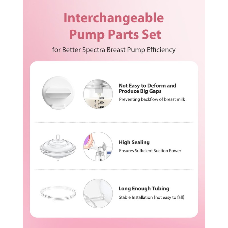 • Interchangeable with Spectra Replacement Pump Parts : The package contains 10 replacement spectra pump parts( Duckbill Valves , Backflow Protector, Tubings and Bottles ).Compatible with Spectra S1, Spectra S2, Spectra 9 Plus.Note:Not Original Spectra pump parts