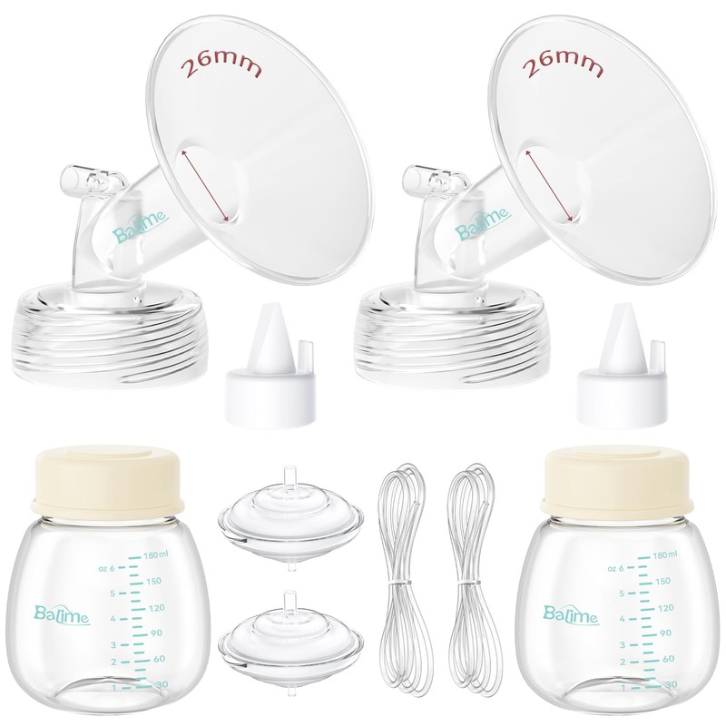 Breast Pump Parts Compatible with Spectra S1/S2/9 Plus, Not Original Accessories, Full Set Replacements Include 26mm Flanges, Valves, Backflow Protectors (Duckbills Included), Tubings and Bottles