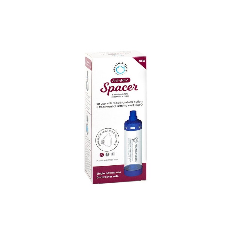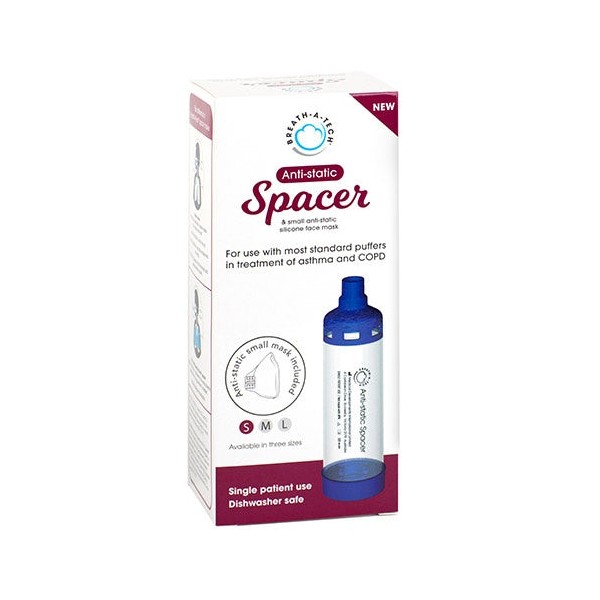 This hand held Breath-a-tech anti-static spacer can be used for effective delivery of aerosolised asthma and COPD medication. Compatible with most standard puffers. The chamber is recyclable and anti-static. This ensures maximum drug delivery with very little medication sticking to the chamber.