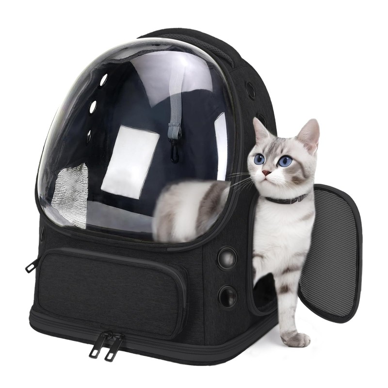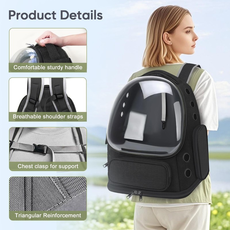 - Ventilated Bubble Design: Features a sleek, transparent panoramic bubble window for unobstructed viewing of your cat. Equipped with 10 vents to ensure optimal airflow and breathability, keeping your cat comfortable and relaxed during travel
