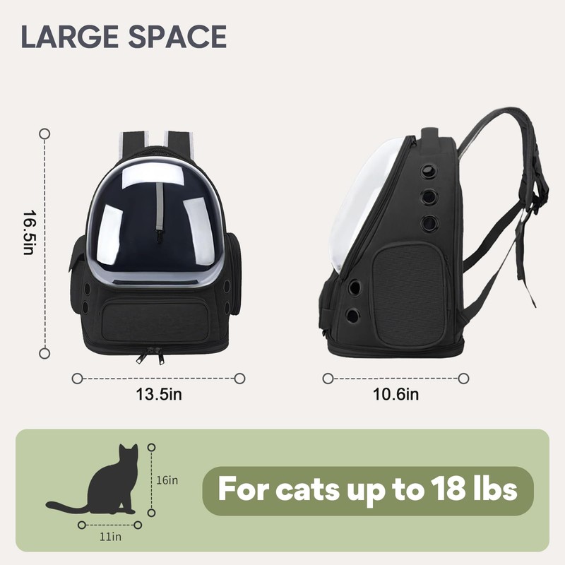 Breathable Cat Backpack Carrier, Large Space Cat Bubble Backpack for Kitty & Small Dog up to 18lbs, Foldable Cat Carrier Backpack, Transparent Airline Approved Carrier for Travel (Black)
