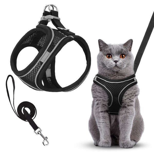 • Safety protection: black soft harness for cat's unique design surrounds your cat in a 360 degree circle to ensure that your cat is safely secured in the harness. The cat harness set is equipped with reflective strips so you can see where your cat is at night.
