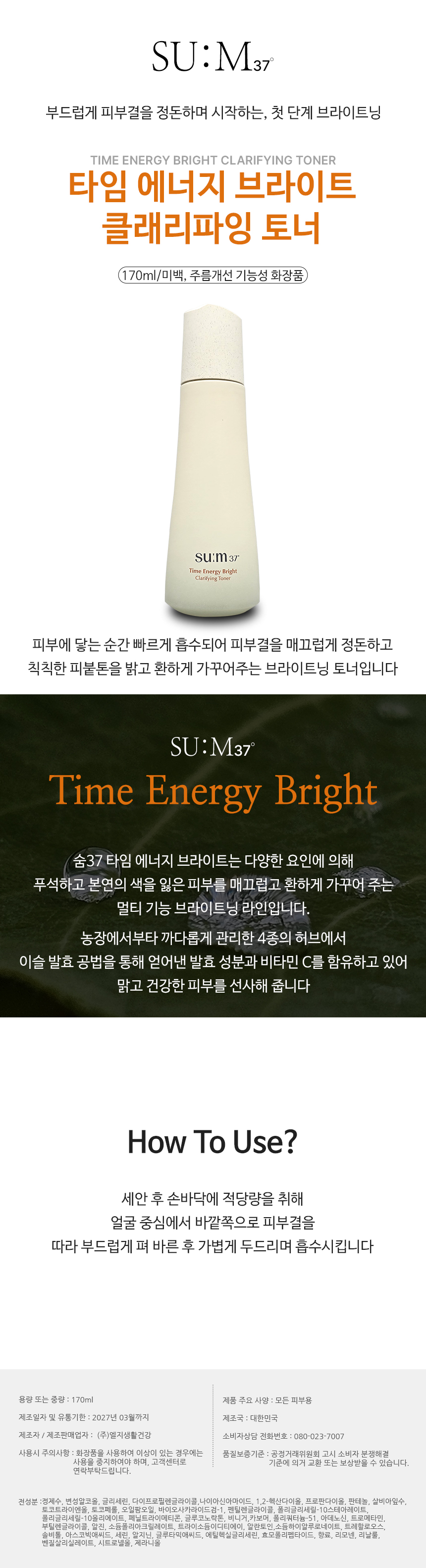 숨 타임 에너지 브라이트 클래리파잉 토너 170ml