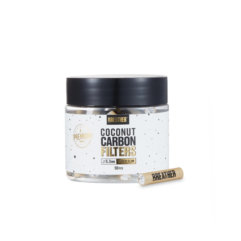 Breather - 50 pcs Super slim 5.3MM coconut activated charcoal filters with ceramic caps