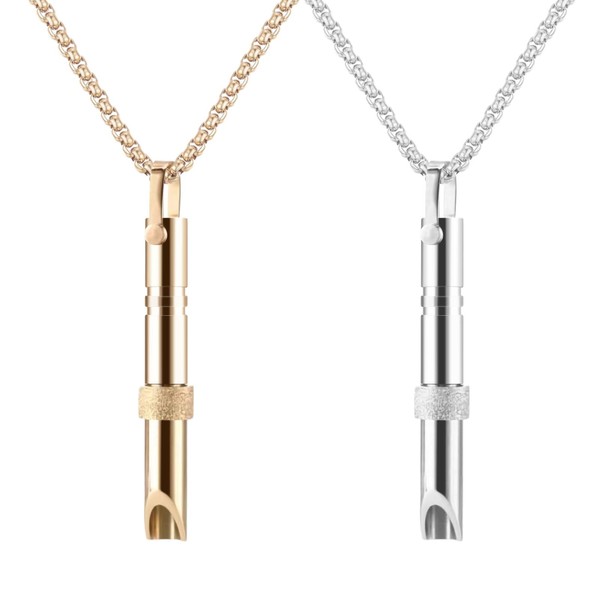 Breathing Necklace,2 PCS Breathlaces NecklacE Silent Design Anxiety Whistle Necklace,Calms for Anxiety Necklace,Anxiety Relieve Necklace,Calm Carry for Anxiety for Stress & Anxiety Relief(Silver+Gold)