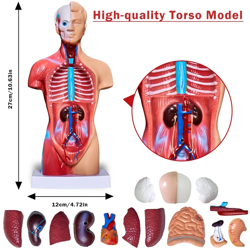 - Model dimension: Our model kit is dedicated and has more fun for children, the skeleton model is about 18 inches high, the torso is 11.5 inches high, and the heart is about 8 inches high, including the stand, Human heart model and torso can be assembled and disassembled for deeper learning with fun.