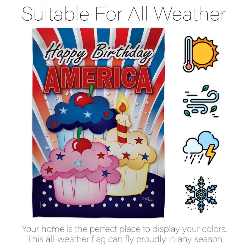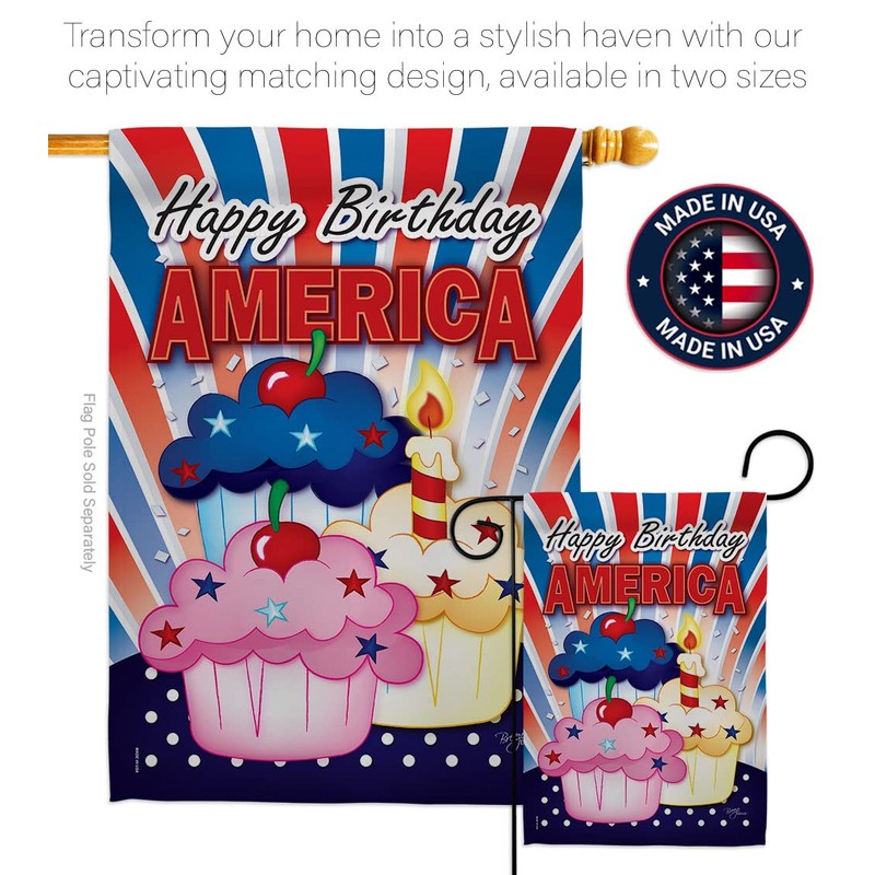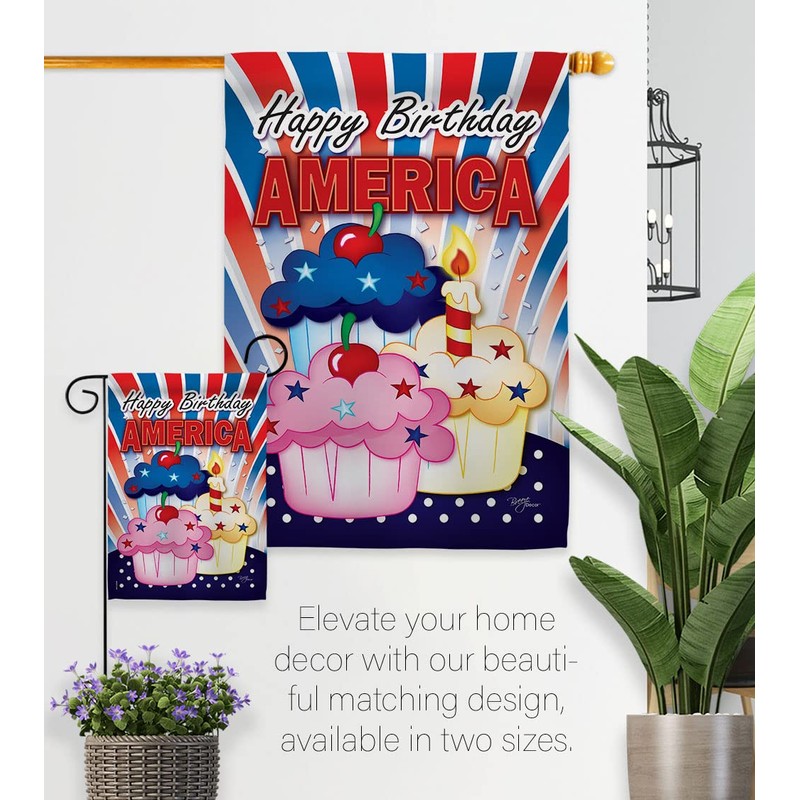 Breeze Decor American Cupcake House Flag 2 pcs Pack Patriotic Fourth of July Independence Day Fireworks BBQ United State Decoration Banner Small Garden Yard Gift Double-Sided, 28"x 40", Imported