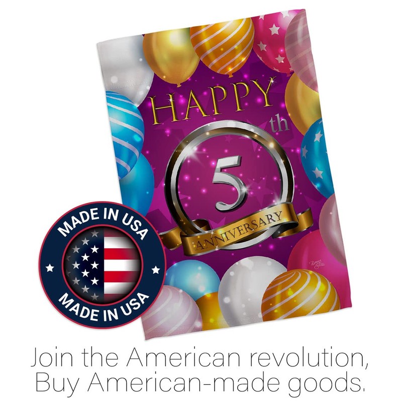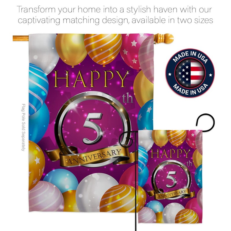 Breeze Decor Happy 5th Anniversary House Flag Set Celebration Couple Married Wedding Occasion Party Valentines Decoration Banner Small Garden Yard Gift Double-Sided, Made in USA
