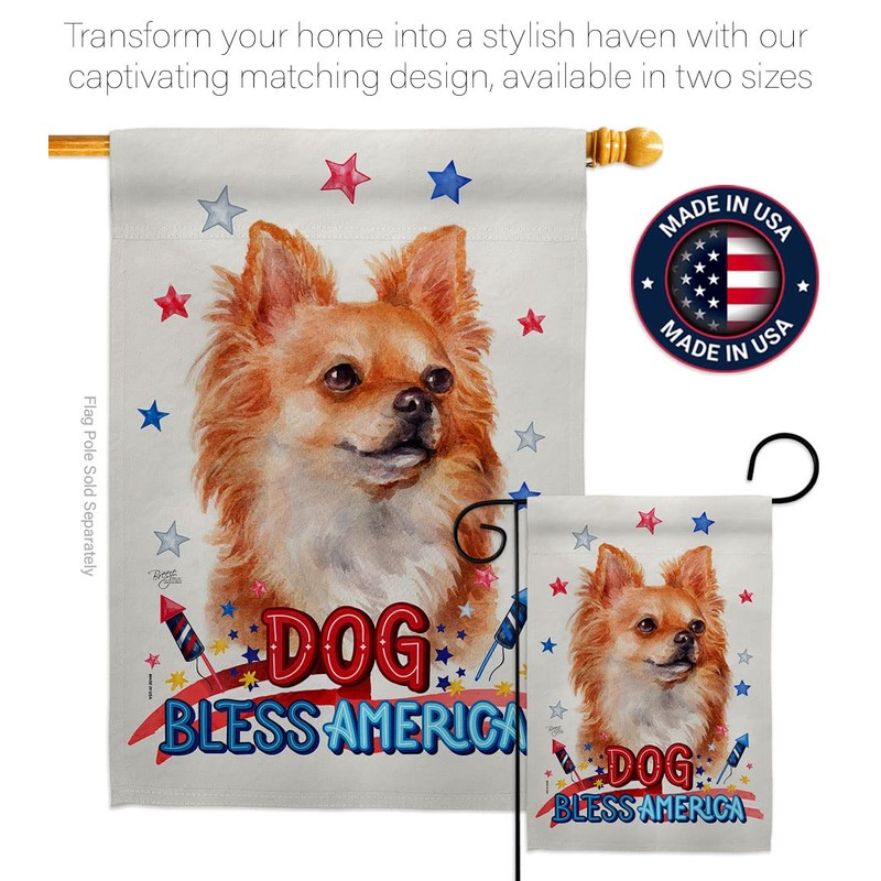 Breeze Decor Patriotic Brown Chihuahua Garden Flag Set Wall Holder Dog Puppy Spoiled Paw Canine Fur Pet Nature Farm Animal Creature House Banner Small Yard Gift Double-Sided, Made in USA