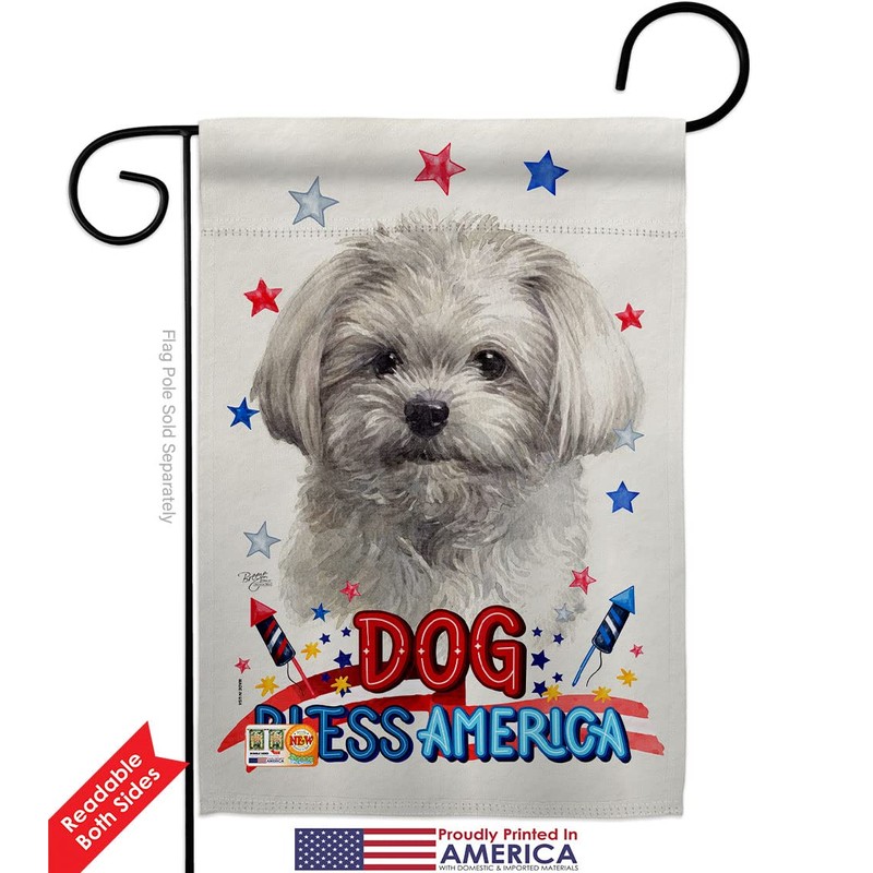 Breeze Decor Patriotic Cute Maltese Garden Flag Pack Dog Puppy Spoiled Paw Canine Fur Pet Nature Farm Animal Creature Applique House Banner Small Yard Gift Double-Sided, Made in USA