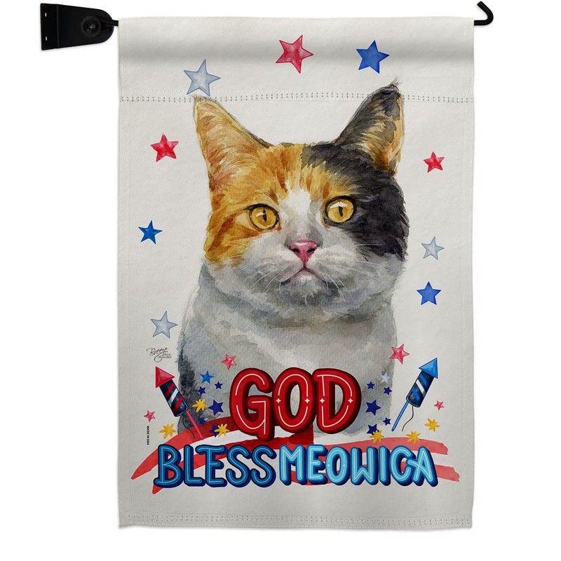 Breeze Decor Patriotic Dilute Calico Garden Flag Set Mailbox Hanger Cat Kitten Meow Spoiled Paw Fur Pet Nature Farm Animal Creature House Banner Small Yard Gift Double-Sided, Made in USA