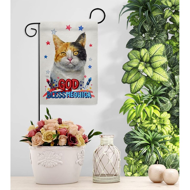 Breeze Decor Patriotic Dilute Calico Garden Flag Set Mailbox Hanger Cat Kitten Meow Spoiled Paw Fur Pet Nature Farm Animal Creature House Banner Small Yard Gift Double-Sided, Made in USA