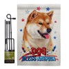 Breeze Decor Patriotic Sesame Shiba Inu Garden Flag Set with Stand Animals Dog Puppy Spoiled Paw Canine Fur Pet Nature Farm Animal Creature Small Gift Yard House Banner Made in USA 13 X 18.5