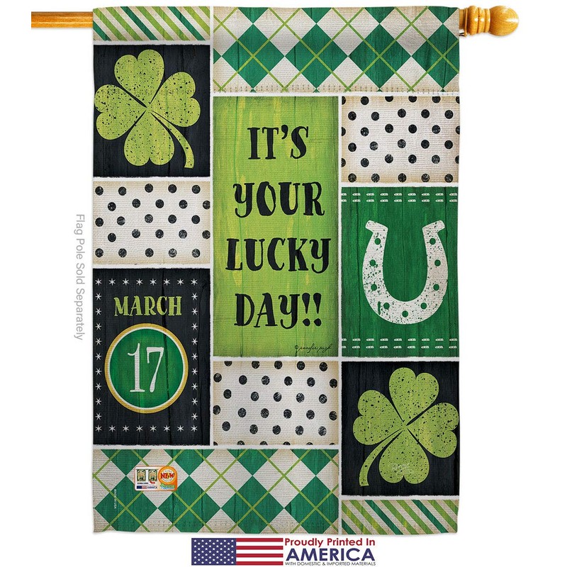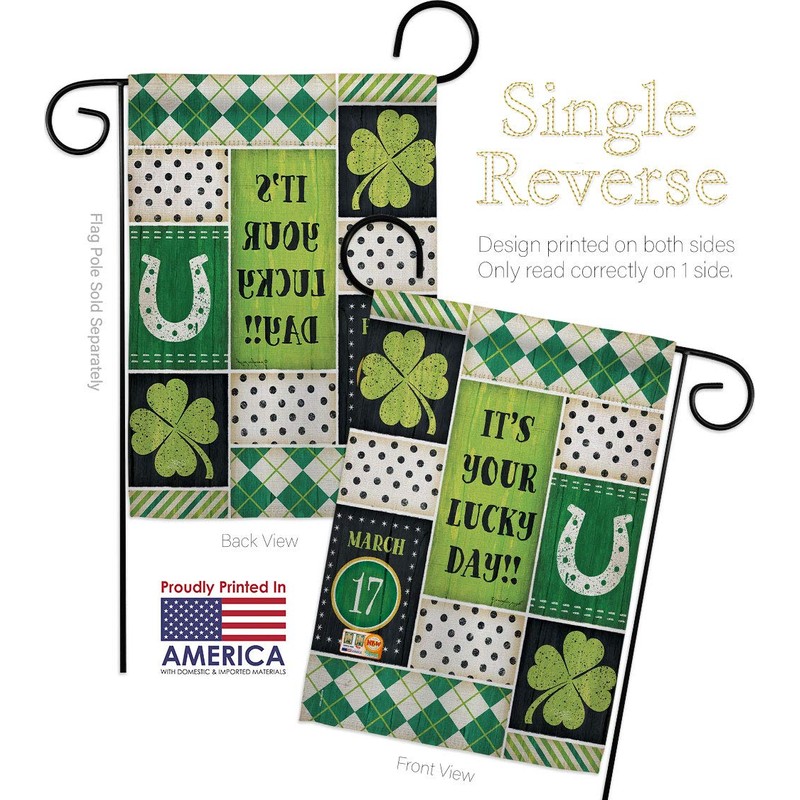 Breeze Decor St Patrick Patricks Lucky Day Garden House Flags Kit Spring Shamrock Leprechaun Coin Holiday March Irish Clover Small Decorative Gift Yard Banner Made in USA 28 X 40