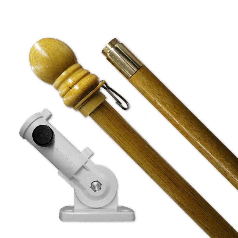- FEATURES - 57" Knockdown Wood FlagPole Adjustable Pole Bracket & Metal Yard Banner Stand Included!!