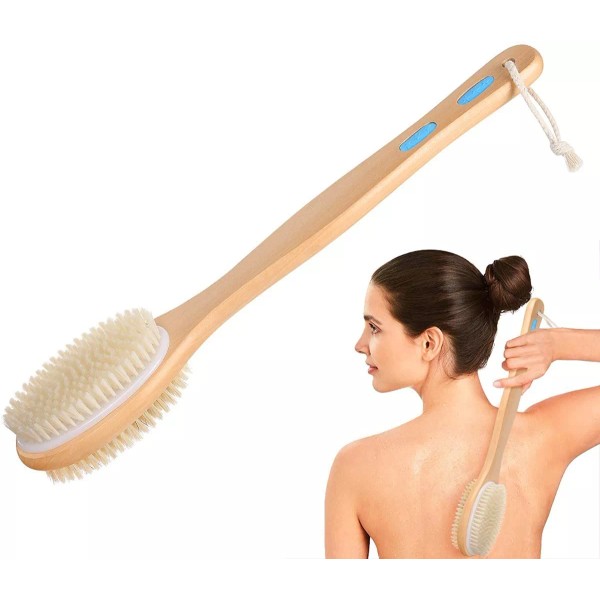 Breezee Market Cepillo Corporal Ducha Baño Doble Cara Exfoliante Mango Larg