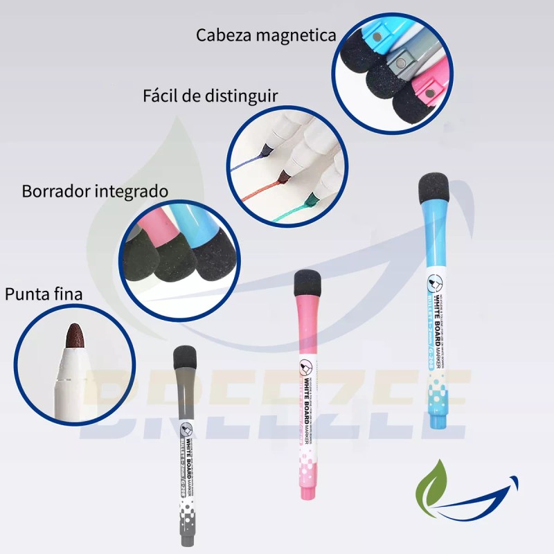 - Accesorios Completos: El set viene con tres marcadores de punta fina de alta calidad, un borrador y tres pines magneticos para una organización óptima.