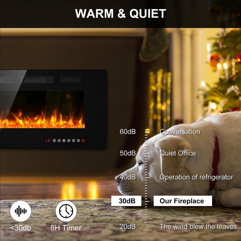- Recessed or Wall Mount-Transform your room with this versatile and stylish fireplace. This electric fireplace can be recessed in the wall, or wall-mounted for a sleek and modern look. You can enjoy the cozy ambiance of a realistic flame display in any setting. This fireplace is not only ideal for your home, but also for commercial and office use.