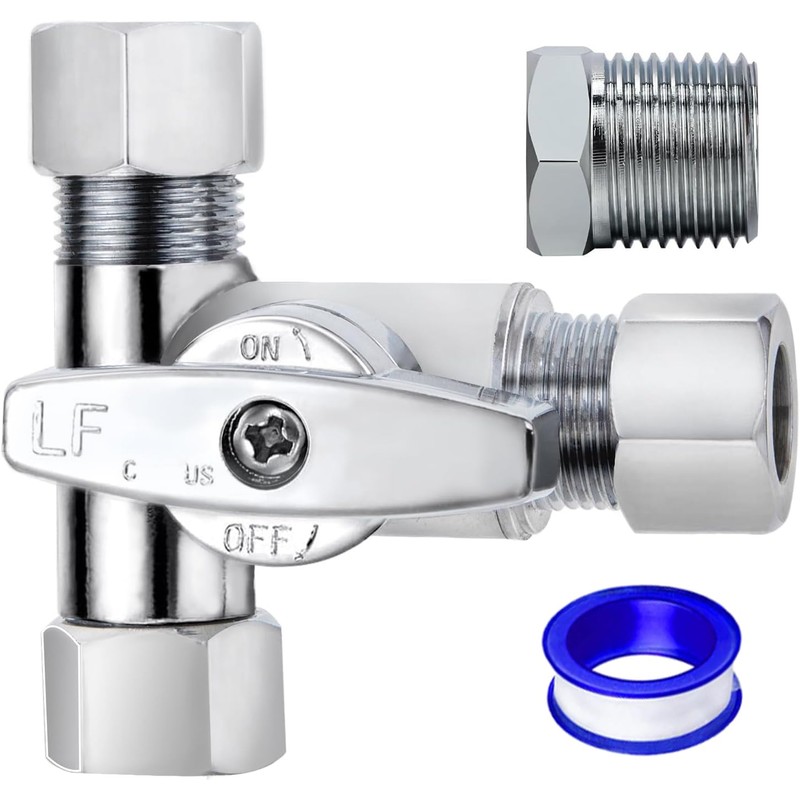 - [Package includes]: 1PC 3/8-3/8-3/8 Tee Stop Valve + 1 PC Teflon Tape.