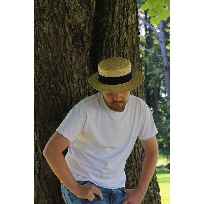 Breiter Circular Saw Straw Hat Summer Hat Sun Hat Made of 100% Straw with Black Ripsban Gondolier Hat Made in Italy 6 cm Brim - Beige, Plain black