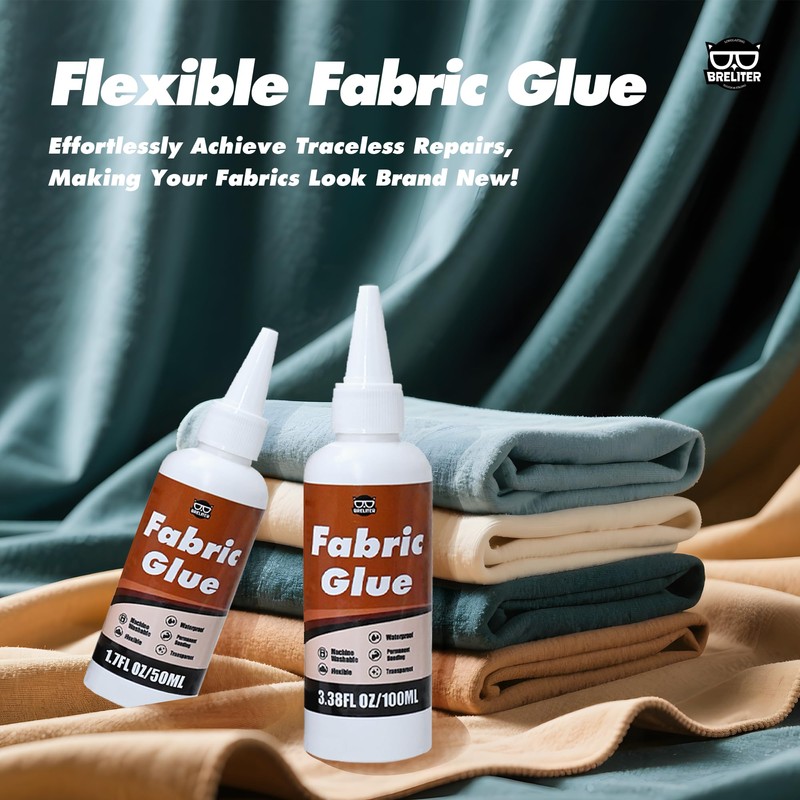 Breliter Flexible Fabric Glue for Clothes, Leather, Shoes - Waterproof, No-Sew Adhesive, Transparent Bond for DIY Repair, Patches, Upholstery, Logo Fix (1.7 fl oz)- Includes Spatula & Clamp