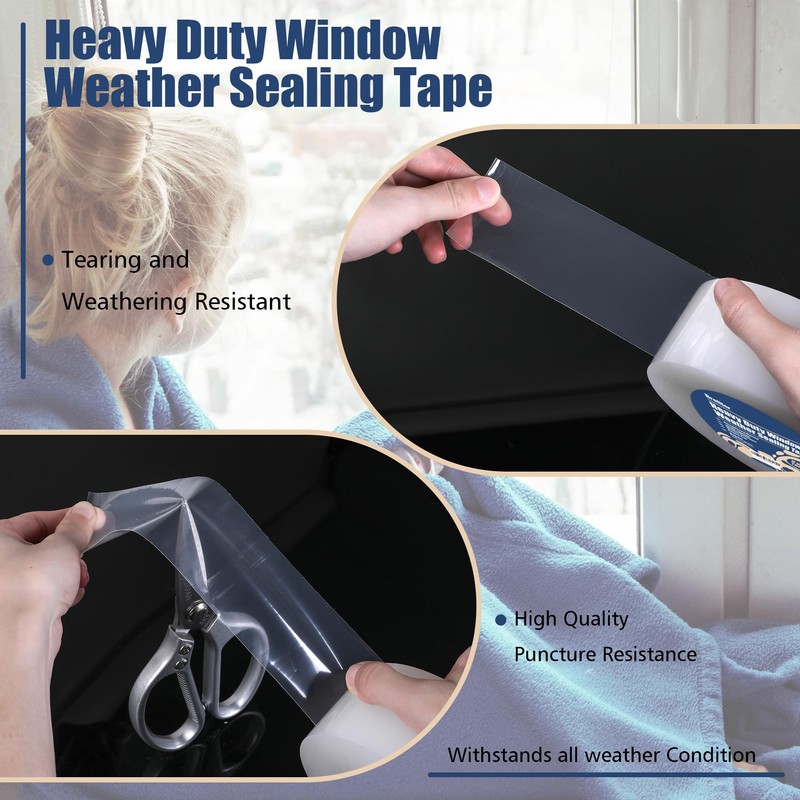 - Airtight Weather Stripping Tape - Offer an airtight and watertight solution for windows. Its strong pressure-sensitive adhesive provides a reliable seal against air and water infiltration, perfect for sealing drafty windows and window-type air conditioning unit gaps. This window weather stripping tape is effective against cold drafts and particulate matters from permeating your room.