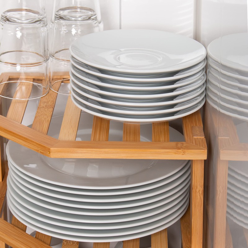 In the kitchen, this shelf ensures that all the little "stand-in-the-ways" find their place. From the salt shaker to the cruet to the kitchen towel, everything is within easy reach in the corner of the shelf. Rotate the shelf 180 degrees and place bottles, such as vinegar and oil, on the middle level of the shelf. Even in the kitchen cabinet, spices and ingredients can be clearly distributed over the three levels. You can create plenty of additional storage space in the cupboard and in front of it with your new cake stand