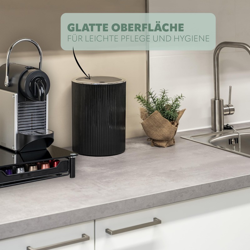 bremermann Gavello Cosmetic Bin with Swing Lid // Bathroom Bin with Grooved Decoration Plastic 5.5 Litres Black