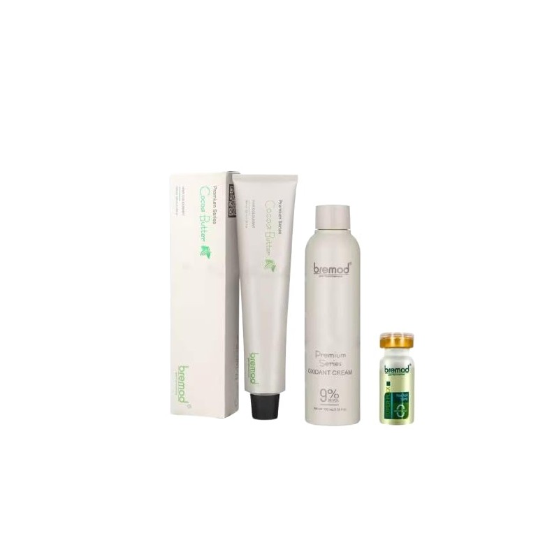Bremod Premium Hair Colouring Set, Milk Tea Ash, with 9% Oxidant Cream and Cocoa Butter with Superplex 10ml