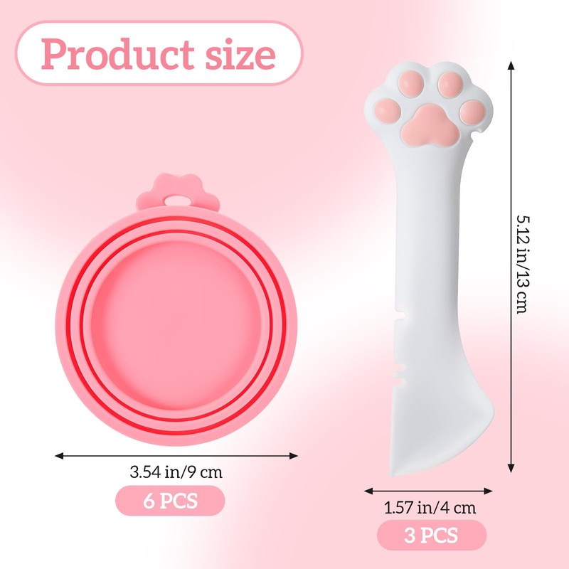 - Package Includes:The package contains 2 pieces of cat food can covers lids in pink and 1 piece of cat food opener spoon in white. The size of the pet can spoon is 5.12 × 1.57 inches (13 × 4 cm), and the can lids for cat food are designed to fit various can sizes, making them versatile and practical.