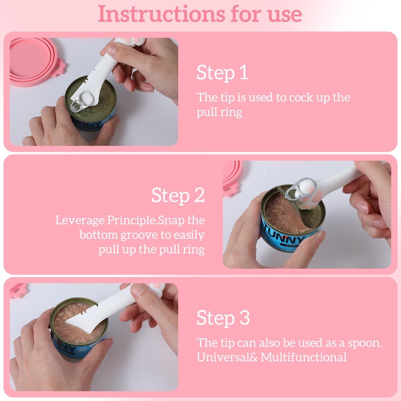- Multi-functional Pet Can Opener:The cat food opener is both a spoon and a can opener. Cat lids and spatula adopts the lever principle design, allowing you to open the pet can easily. The stiff inner bone supports the whole spatula, making it durable and efficient for daily use.