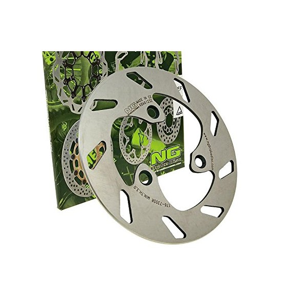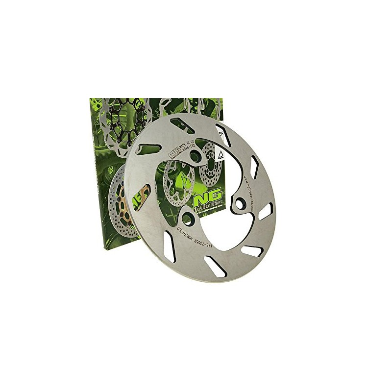 Der Bremsscheibenspezialist NG Brake Disc ist ein spanisches Familienunternehmen, welches seit mehr als 20 Jahren Bremsscheiben für Motorräder, Roller, Quad und ATV produziert. Mehr als 30 namhafte europäische und japanische Fahrzeughersteller vertrauen auf die Spitzenqualität von NG und rüsten ihre Fahrzeuge ab Werk mit NG gefertigten Bremsscheiben aus. Als einer der wenigen Hersteller verfügen alle NG Bremsscheiben über eine Zertifizierung des TÜV Rheinland und dürfen im öffentlichen Straßenverkehr gefahren werden. Die Allgemeine Betriebserlaubnis des Kraftfahrtbundesamtes KBA wird bei jeder Bremsscheibe mitgeliefert. Die OEM Version entspricht in den Abmessungen komplett der Originalbremsscheibe. Das Design kann jedoch bei einigen Modellen abweichen. Straßenzulassung des Kraftfahrtbundesamtes: ja Außendurchmesser: 180mm Innendurchmesser (Aufnahme): 58mm Stärke: 3,5mm Löcher: 3 Lochdurchmesser: 8,5mm Typ: Standard passt auch auf: PEUGEOT ELYSEO 50 - 2003 - REAR ELYSTAR 50 - REAR SPEEDFIGHT 2 50 L - 2001 / 2002 - FRONT SPEEDFIGHT 2 50 L - 2001 / 2002 - REAR SPEEDFIGHT 2 50 L / 2 50 N - 2001 / 2002 - FRONT SPEEDFIGHT 2 50 L / 2 50 N - 2001 / 2002 - REAR SPEEDFIGHT 2 50 N / 2 50 ND - 2001 / 2002 - FRONT SPEEDFIGHT 2 X RACE L/N/ND - 2001 / 2002 - FRONT SPEEDFIGHT 2 X RACE L/N/ND - 2001 / 2002 - REAR SPEEDFIGHT 50 AIR KAT - 1999 - FRONT SPEEDFIGHT 50 H2O - 1997 / 1998 - FRONT SPEEDFIGHT 50 PROST - 1999 / 2000 - FRONT SPEEDFIGHT 50 X PRO - 1999 / 2000 - REAR SPEEDFIGHT 50 X PRO - 1999 / 2000 - FRONT SPEEDFIGHT X TEAM AIR / LC - 1999 / 2000 - FRONT X-FIGHT 50 - 2000 / 2001 - FRONT X-FIGHT 50 - 2000 / 2001 - REAR X-FIGHT 50 AIR / H2O / LC - 2000 - FRONT X-FIGHT 50 AIR / H2O / LC - 2000 - REAR ELYSEO 100 - 2003 - REAR SPEEDFIGHT 100 / PROST - 1997 / 2002 - FRONT SPEEDFIGHT 100 / PROST - 1997 / 2002 - REAR SPEEDFIGHT 2 100 NT - 1997 / 2002 - REAR SPEEDFIGHT 2 100 NT - 1997 / 2002 - FRONT 176 4250362494344