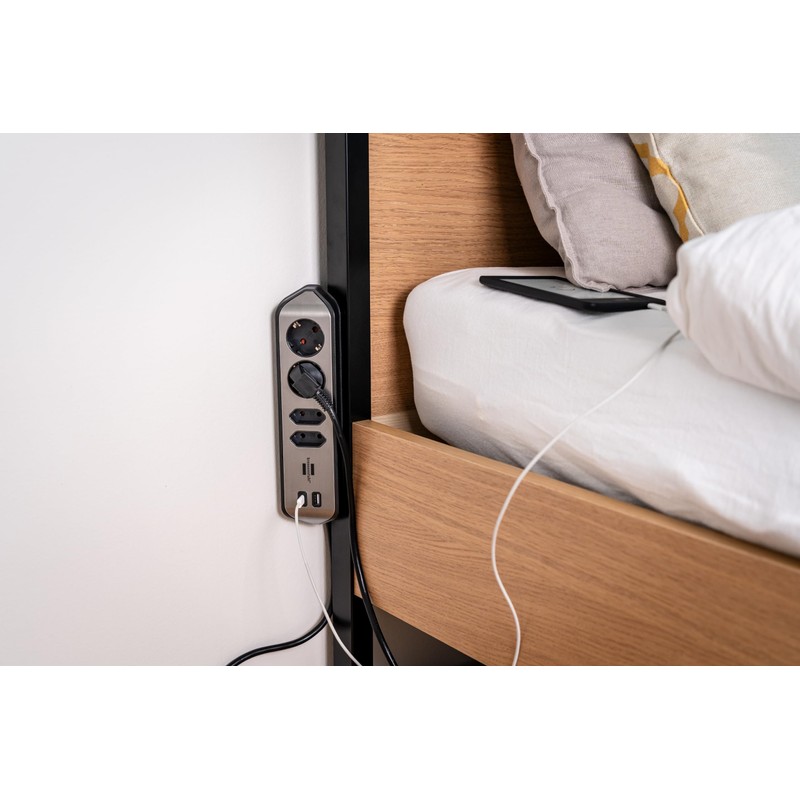 - Table socket 4-way with 1x USB C PD 30W (for fast charging) and 1x USB A 18W, earthing contact sockets in 45° arrangement and 2 Euro sockets in 90° arrangement