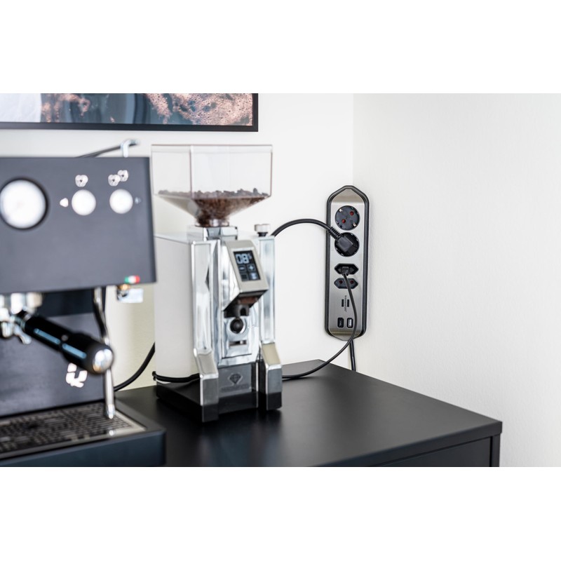 - Sturdy multiple socket made of high-break-resistant plastic and high-quality stainless steel surface brings order to your kitchen or office