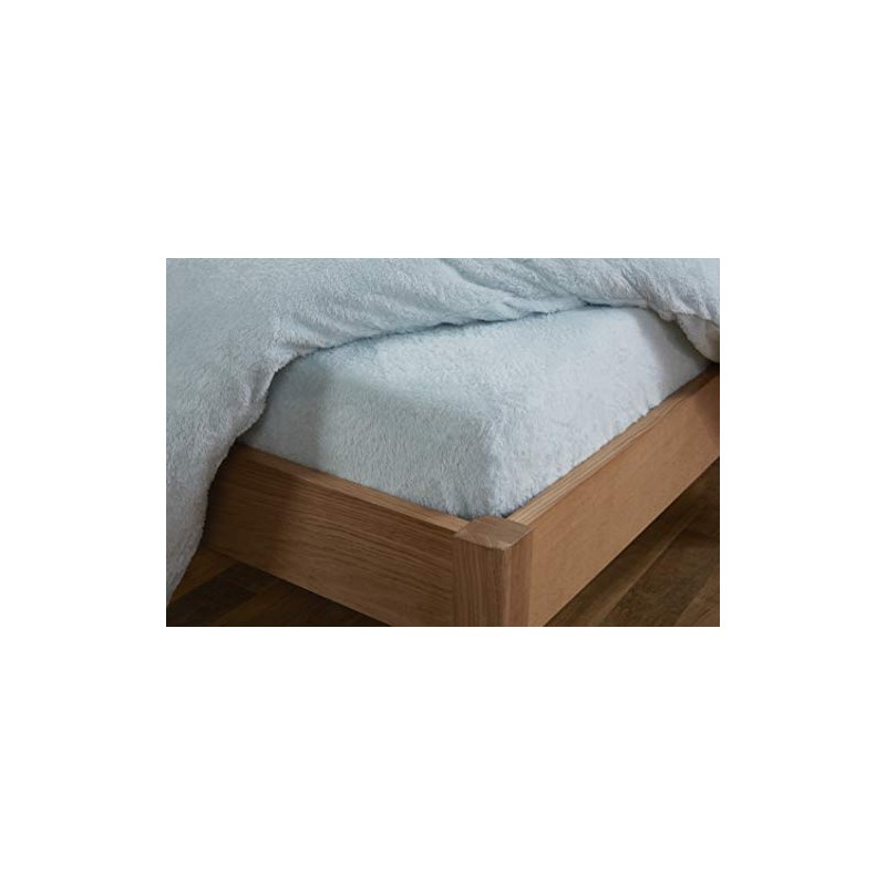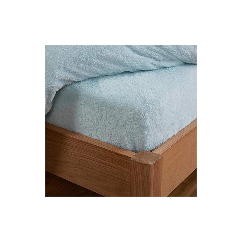 Brentfords Teddy Fleece Fitted Sheet Plain Thermal Warm Soft Luxury Bedding Duck Egg Blue