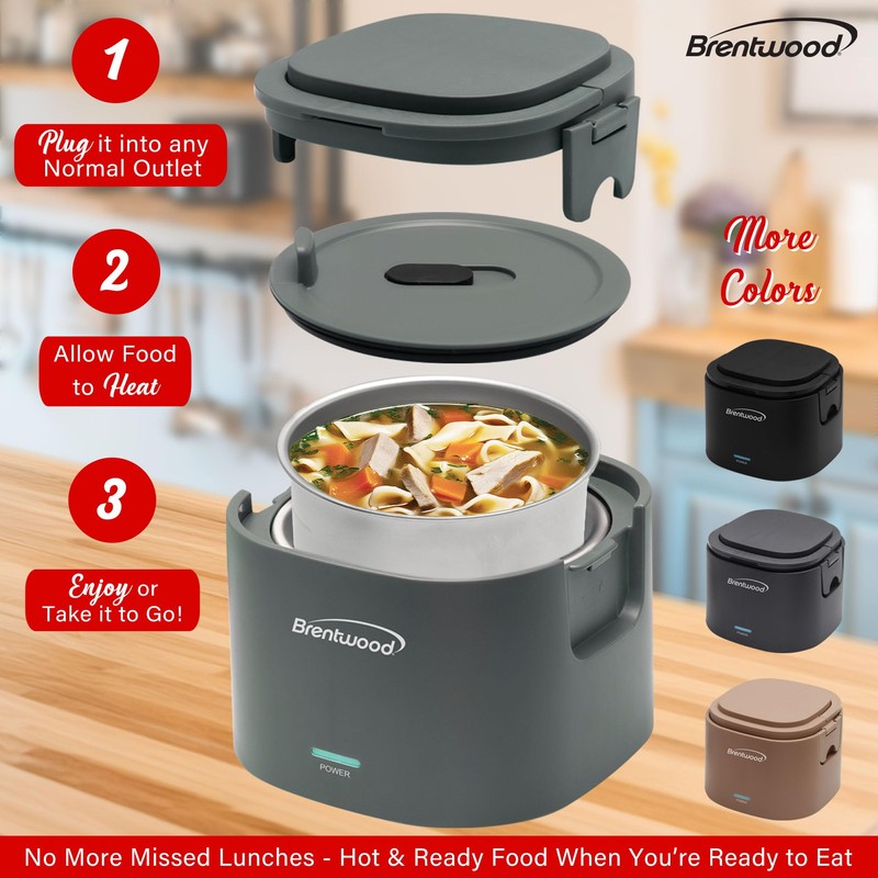 Brentwood 110V 50W 0.6L Portable Leakproof Electric Lunch Box Food Warmer (Gray)