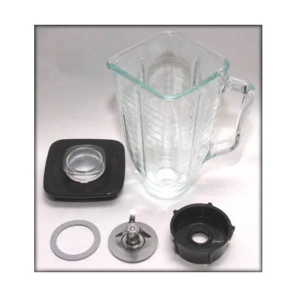 5 Cup Square Top 6 Piece Complete Glass Jar Replacement Set, Fits Oster Blender
