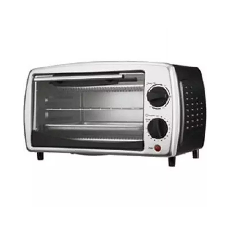 Brentwood TS-345B The powerful 800w Brentwood TS-345B Stainless Steel 4 Slice Toaster Oven can toast, broil and bake an array of foods. Adjustable temperature ranges 50 to 450 degrees. Choose between the 15 minute timer with auto shut off and stay on functions. Two rack positions and two heating elements insure even toasting. Convenient crumb tray. Includes food tray and wire rack.