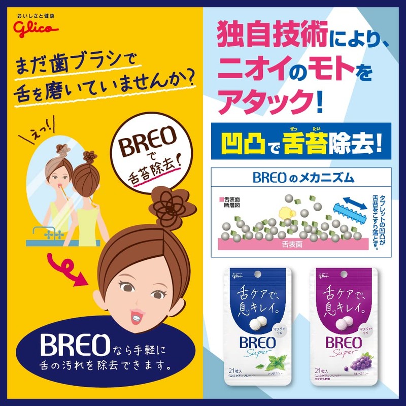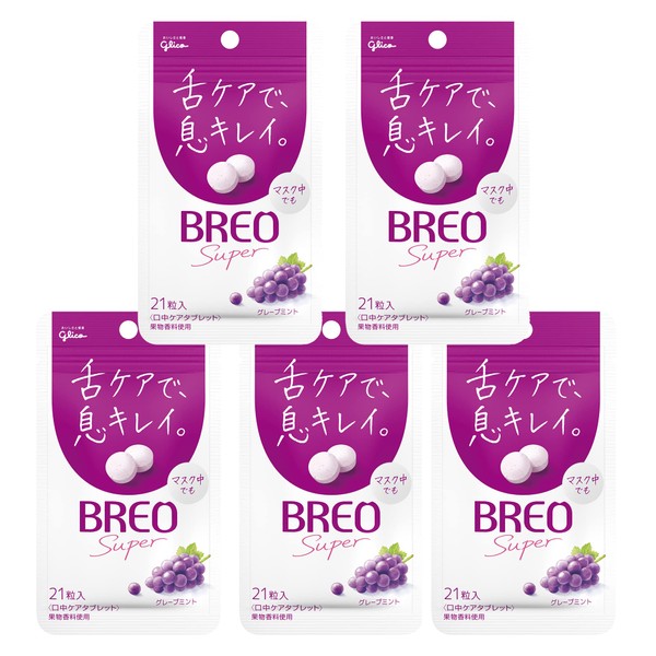 BREO(ブレオ) 江崎グリコタブレット (グレープミント) 17g ×5個 舌ケア 息キレイ 息スッキリ 舌苔 リクローズド パウチ