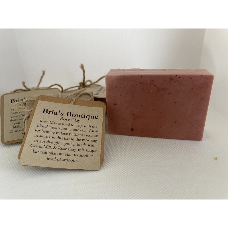 My rose clay bar is made with natural ingredients. Goats Milk, Rose Clay Powder and vitamin E. Great bar to help blood circulation in the skin which helps control puffiness and removes dark spots and damage from skin.