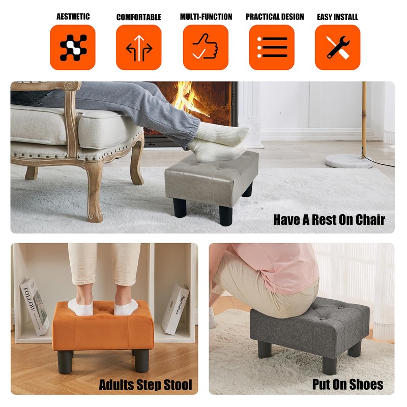 - 【Adaptable Functionality】 Its varied features make the stylish small footrest ottoman a multipurpose product. You can use it when, putting on shoes at the entryway, as extra seating in the living room, having a rest on a chair, or using it as a footrest for under desk.