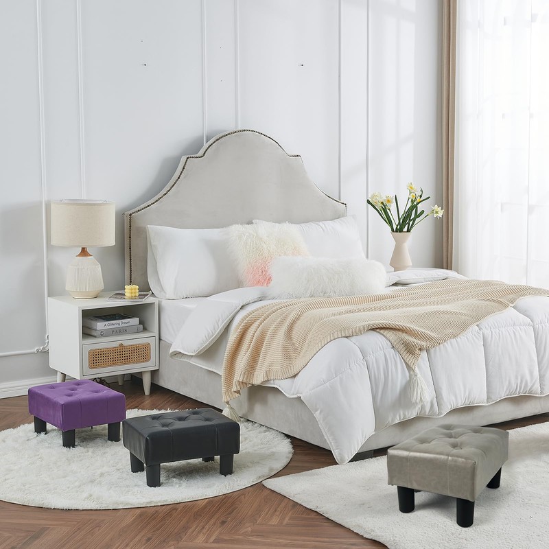 - 【Stable Footrest】 The footstool has been comprehensively upgraded, Built with a solid wood frame, this small ottoman is sturdy and durable enough. The maximum static load weight is up to 242lbs (110kg). While specifically felt pads ensure that your floors are protected from scratches.