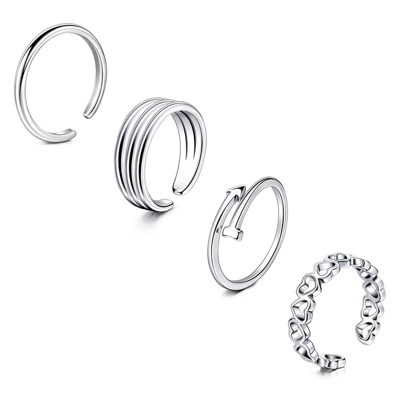 Briana Williams 4pcs Toe Ring stainless steel Adjustable Open Silver Rings