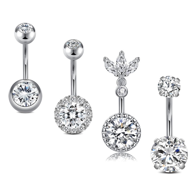 Briana Williams Belly Button Piercing Silver 14G 10 mm Heart Piercing Belly Button Stainless Steel Belly Piercing CZ Diamond, Stainless Steel
