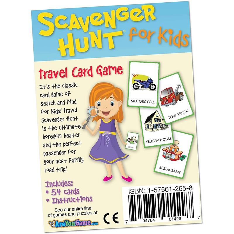 - The Travel Scavenger Hunt for Kids from University Games is great fun on a car trip