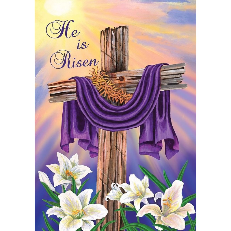 Easter Cross House Flag Religious Holiday He Is Risen Briarwood Lane 28" x 40"