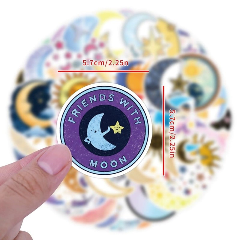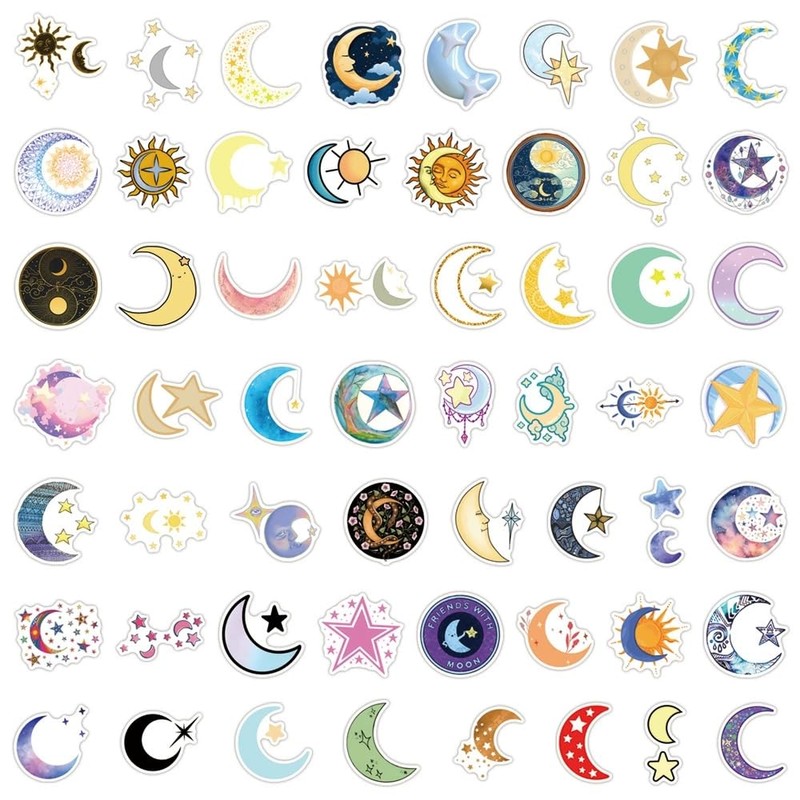 Bric Dodo Pack of 50 The Moon of Stars Stickers Car Laptop Phone Guitar Skateboard Motorcycle Bicycle Moon Star Stickers Set Vinyl Waterproof Aesthetic Stickers for Teenagers Children Adults